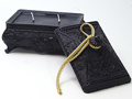 RATNAPURA【Topaz】 品番:R-002 価格:\4,725(¥4,500) サイズ:12cm×8cm×9cm 色:ブラック×ブラック 香り:ベルガモット 内容量:330g 成分:パラフィンワックス・色素・香料・芯(コットン) ※本製品は容器(宝石箱)等もワックス(蝋)で製作されています。 そのため燃焼の際、容器内側にロウが多少残るように作られています。 | |||||